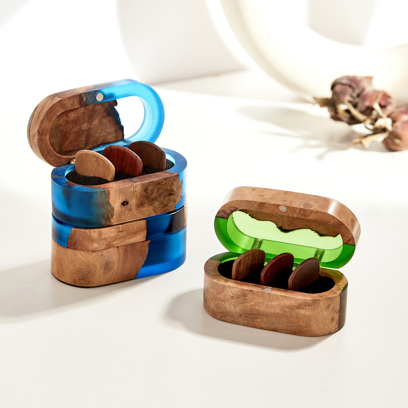NATURAL —The guitar pick case is made of hand-polished natural wood and resin, and a retro texture, clear grain, and smooth touch without any rough edges. Each of our guitar pick boxes is unique, and I believe you will not put it down after taking it home. Wood and resin asethetics also adds artistic touch in your life.